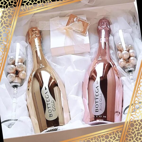 2 x 75cl Bottles – Flutes – Glass Baubles – Luxury Chocolates – Keepsake Magnetic Close Box – €108