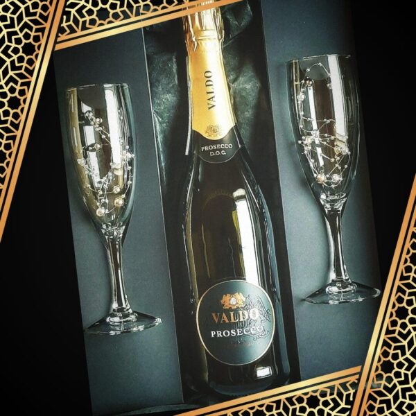 1 x 75cl Bottles – 2 Glass Flutes – Bubble Decorations – Keepsake Magnetic Close Presentation Box – €54.00