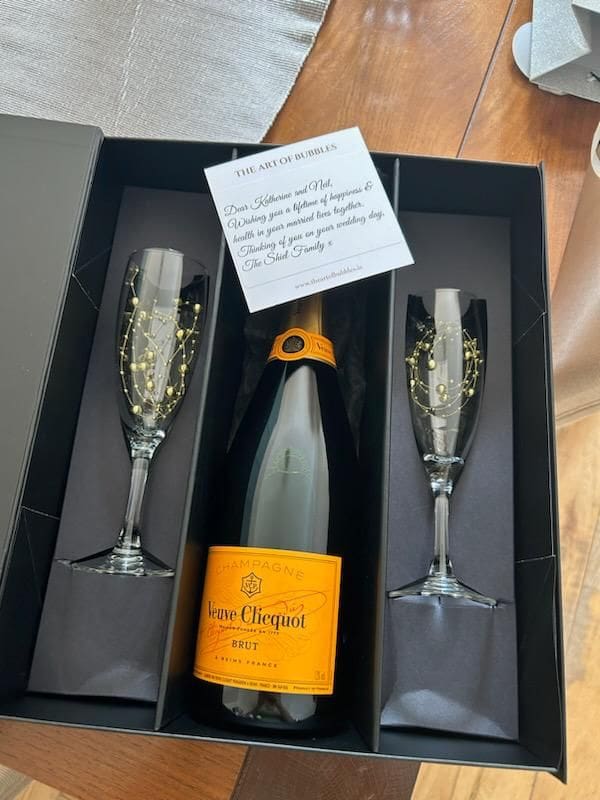 75cl Bottle – 2 Glass Flutes – Bubble Decorations – Magnetic Close Box – €98.00